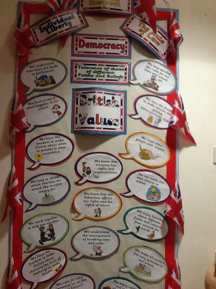 A display board promoting British Values and engaging pupils positively in the process can be found in the school entrance hall.